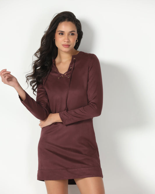 Mulberry Suede Lace Up Dress