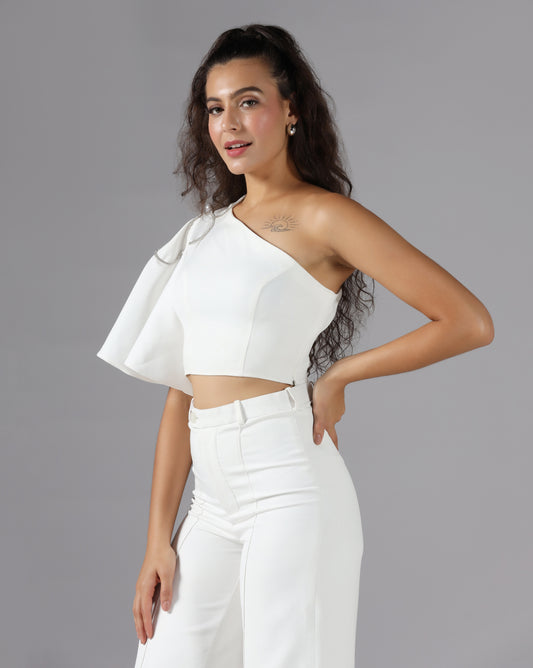 Pearl petal one-shoulder top